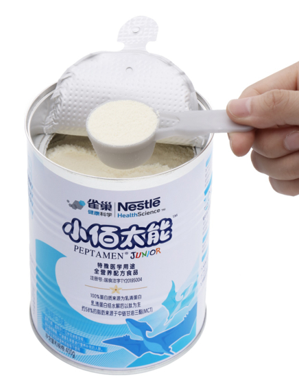 雀巢小佰太能在配方上与小佳膳稍有些不同,是一款更适合肠胃功能受损的营养不良儿童的产品。它采用了100%乳清配方,易吸收、易耐受6,同时还有胃肠道负担小的肽类配方,有助于蛋白质吸收,改善孩子的肠道功能7。并且它添加了58%MCT,不仅易消化,可促进高效吸收8,也能更快速地为孩子提供更多能量。