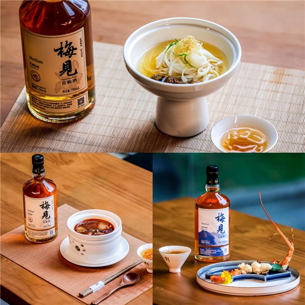 唐宋饮酒文化盛行,梅见夜宴自然少不了美酒佳肴。梅见经典原味配海皇酸辣翅,海味里裹着鲜香;梅见烟熏风味搭配冰梅啫喱冻鲜鲍,齿颊留香;西岭梅酒搭配潮汕龙虾,山海在舌尖绵延……酒液的清香与梅子香平衡融合,再搭配或细腻怡人或清鲜淡美的粤菜,再好不过。