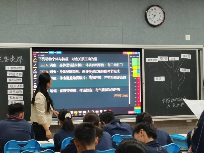 通过优质教学资源共享实现精准到校,多种渠道精心挑选教学课件、教材、学案,打造区本、校本资源库,保证资源的针对性、有效性、精准度和新颖性;通过日常教学数据分析,精准定位学生学习程度与薄弱环节,针对不同层次的学生布置分层作业,实现分层精准教学;通过课堂多元互动工具丰富课堂教学方式,依据学生特点和基础实施分组教学,组内互评、小组加分、随机点名等,激发学生学习兴趣。