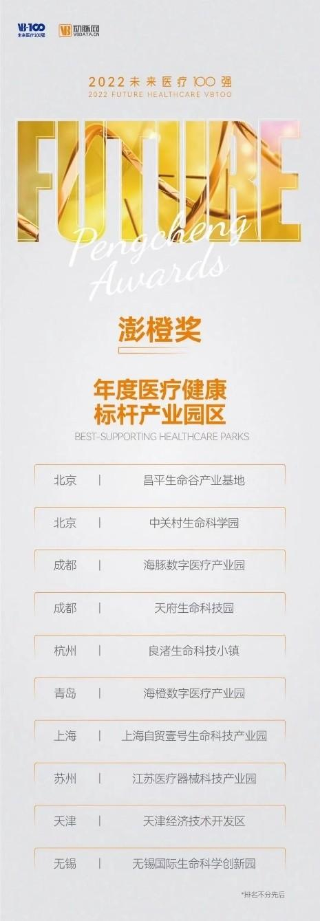 值得一提的是,在动脉网未来医疗100强·澎橙奖的评选中,昌发展运营的CHAMPIONBIO昌平生命谷产业基地和中关村生命科学园双双入选年度医疗标杆产业园区。