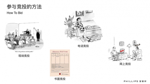 参加拍卖时候可以通过以下几种方式,现场竞投、书面竞投、电话竞投、网上竞投。