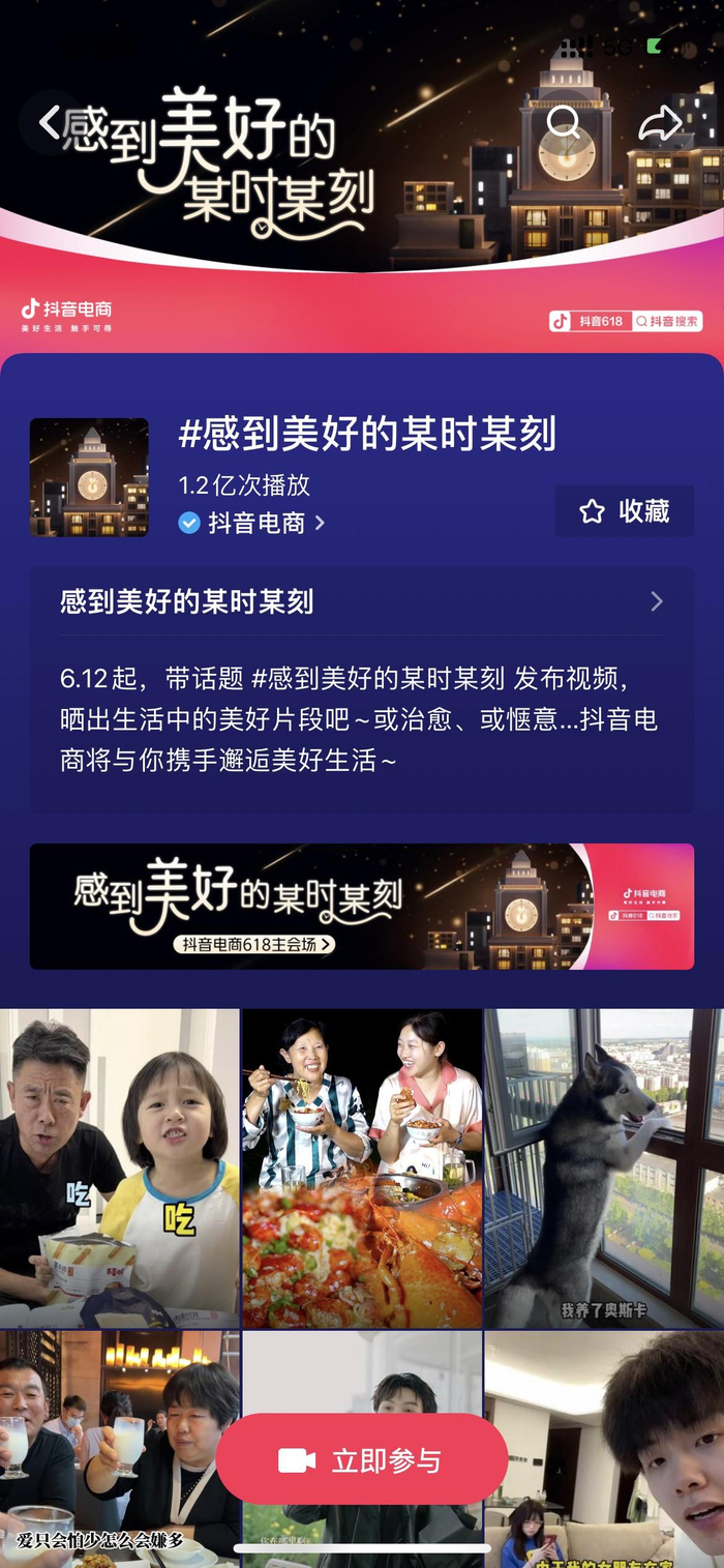 短片发布后,抖音电商还于6月12日在抖音发起了"感到美好的某时某刻"主题社交互动吸引了众多重量级达人和用户的关注与参与。其中,千万粉丝达人潘姥姥便用镜头记录了自己在乡村生活的24小时,虽然只是普通的一日三餐,但因为有了家人的陪伴以及电商的快速触达,生活本身就成为了一种美好。