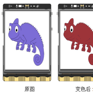 变色龙是一种善变的树栖爬行类动物,在经过几千万年的衍化后,为了逃避天敌的侵犯和接近自己的猎物,它们形成了一种生物本能,常在不经意间改变身体颜色,从而让自己融入周围的环境之中。然而,如此炫酷的技能,常常只能在故事中听到,利用DFRobot行空板的屏幕结合颜色传感器即可模拟呈现一个变色龙的效果。
