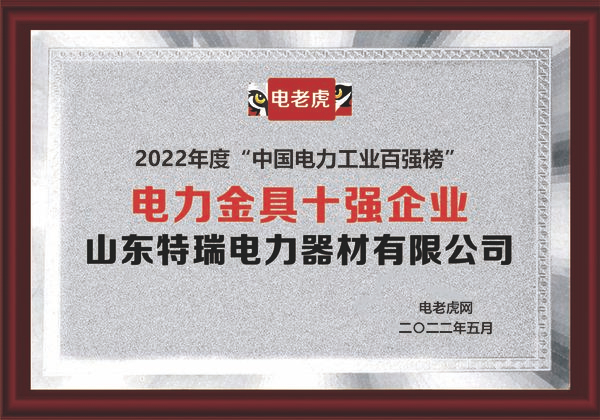 山东特瑞电力器材有限公司凭借超强的综合实力、优秀的品牌口碑、超高的人气支持等荣获2022年度“电力金具十强企业” 荣誉称号。