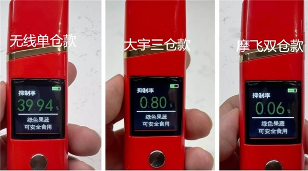 那么果蔬清洗机真的有用吗?首先看看它们实际的除菌能力、去除农药能力如何?下面用手持农药残留检测仪来分析这三款清洗菠菜后的农药残留。
