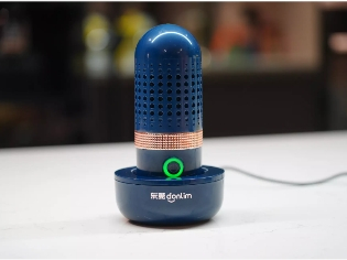 无线款果蔬清洗机机身小巧,便于携带,能直接扔在水中进行净化,底座充电也很方便。