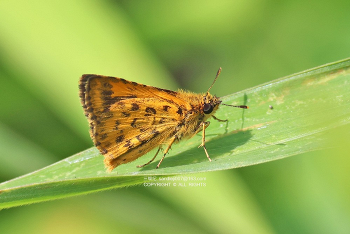 同样是1厘米左右的黄斑弄蝶,可以用500mm端拍出“数毛版”。