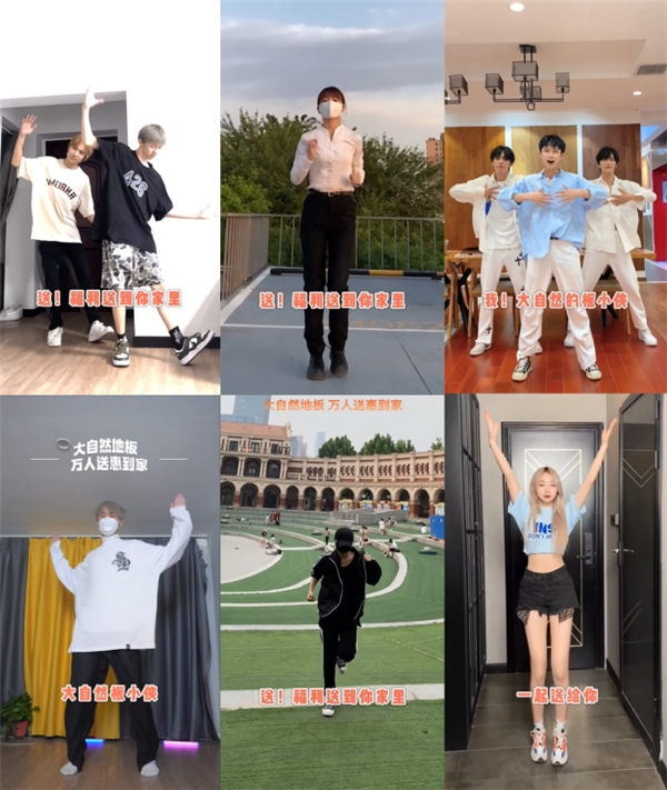 品牌声量快速出圈后,大自然地板更是借助多维平台与KOL矩阵穿透圈层的力量,形成精准扩散渗透后,联动全国线下门店全体员工一起打卡“板小侠舞”,突破线上线下的桎梏,做到小圈层突破、大圈层扩散的传播效果。而这一系列的多触点联动形成的涟漪式传播,也强化了“人人皆是板小侠”和板小侠的服务理念,取得了品牌破圈、品效合一的双丰收效果。