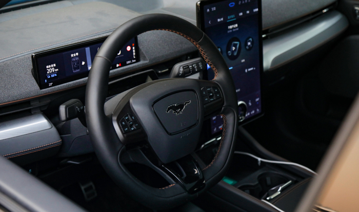 于是当你开上一段时间后便能发现,在跑过一些颠簸路时,这台Mustang Mach-E不会像奥迪e-tron那样有一种把路面“烫平”的感觉,在把过滤到位的前提下,尽可能地把路面反馈通过方向盘明确地传递给驾驶者,如果说奥迪e-tron是那种泰山般的稳重,也许用轻盈来形容这台Mustang Mach-E更为恰当。