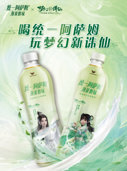 统一阿萨姆于6月16日起在天猫平台的【统一官方旗舰店】和京东平台的【统一京东自营旗舰店】发售统一阿萨姆奶茶X《梦幻新诛仙》合作款全新包装的煎茶奶绿奶茶,让更多消费者感受清新国风,在品味奶茶中获得治愈的感受。