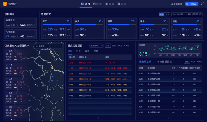 目前,「瑞信·河狸云」为越秀、融创、旭辉、新城等超过十六家国内前五十强地产企业打造专有的工程数字化平台;同时也为深圳市住建局及深圳市11个区的住建局设计了针对安全及质量监管的智慧建造·智慧监管平台。