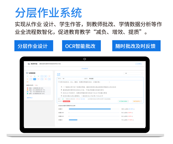 通过智慧平台,学校教学管理的主要环节,可实现高效的学情数据抓取、建模分析与可视化输出,让老师们教得更精准、孩子们学得更有效、学校综合管理更智能。智慧平台串联起人、数据和场景,为教学一线有效减负,显著提升了个性化精准教学、作业布置批改和考试数据分析的效率,不断为师生减负增效,从而更好地实现因材施教和立德树人的教育追求。