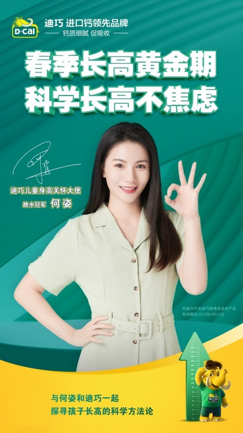 《中国儿童发展纲要(2021-2030年)》中指出,促进儿童健康发展是筑牢健康中国的根基。从小关注儿童成长发育不仅能促进儿童健康生长,更有利于“健康中国”战略的建设和推进。迪巧进入中国22年以来,始终致力于为人们提供高品质钙剂,坚持品牌发展与社会责任并重,将公益事业融入企业基因,持续用公益回馈社会。作为知名钙营养补充剂品牌,迪巧以专业态度助力中国儿童身高促进。2022年,迪巧联袂多位专家,携手跳水冠军何姿共同提出“科学长高不焦虑”的主张,迪巧通过归纳的“巧补营养、巧做运动、巧控体重”三方面科学且成体系的专业内容支持,将容易操作和实践的身高管理方法普及给广大中国家长和儿童。