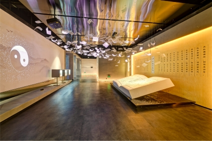 三大展区以东方“留白”美学为设计理念,传统水墨元素与现代多媒体艺术相互映衬,为游客铸就流畅的观展体验。其中,水墨与留白“气韵生动”,黑白灰三色演绎了太极的戏剧性及感染力。明暗对比的空间不仅满足展厅功能性需求 ,更体现出太极的纯净与平静,以及天人合一,道法自然的哲学思考。
