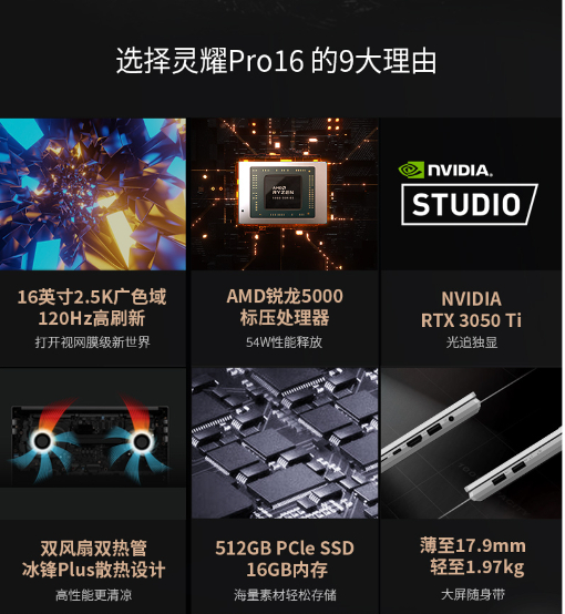 如果你想换一台既能满足日常办公、又能满足日常观影游戏娱乐的笔记本,那么华硕灵耀Pro16非常值得关注,机身薄至17.9mm、轻约1.97kg,日常办公非常便携,性能上搭载了7nm先进制程的AMD R9-5900HX标压处理器和新一代NVIDIA RTX 3050 Ti光追独显,工程制图、制作视频都能轻松应对,运行3A大作游戏也是不在话下。这样一款办公娱乐都能兼顾的爆款笔记本,6月17日晚8点,入手价6999元。