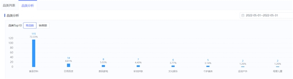 笔者观察,从5月开始,食品饮料商品数占比从90%骤降至70%,到6月,食品饮料商品降至五成,文化娱乐品类飙升至两成。