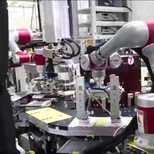 1. AKA Zu系列协作机器人搭配2D视觉,精准识别定位,进行锂电池上下料和后端正负极的焊接。相较人工作业,可减少因人为失误造成的安全事故;