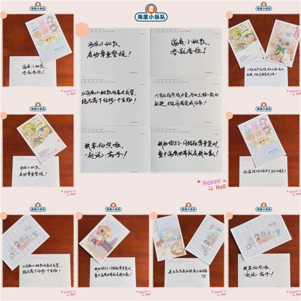 在海底小纵队全球粉丝节启航仪式前,这位粉丝还把亲手绘制的明信片寄到了宝贝王总部,一字一句间都是她对海底小纵队真实喜爱的表达。