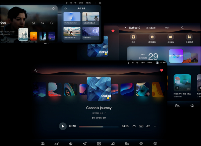 据了解,飞凡RISING OS智舱交互系统采用开普勒风UI设计美学,3D质感拟态化卡片设计,并在此基础上融入更多星球的自然地貌元素,以本真优雅的形式展现科技浪漫美学。
