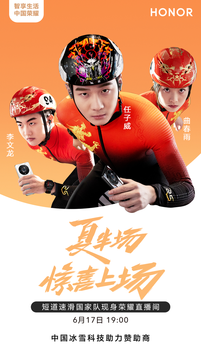 荣耀联手短道速滑国家队 直播分享618狂欢冠军产品