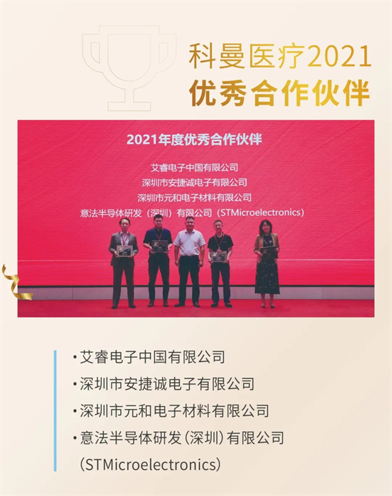 深圳市安捷诚电子有限公司于1993年成立,是专业代理世界知名品牌电子、电气元器件的供应服务商,2009年开始与科曼合作。医疗行业有着广阔的市场前景,科曼作为医疗设备研发制造商,在与安捷诚十几年的共同携手中,双方都取得了巨大发展。