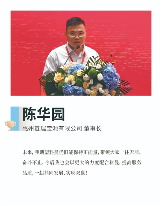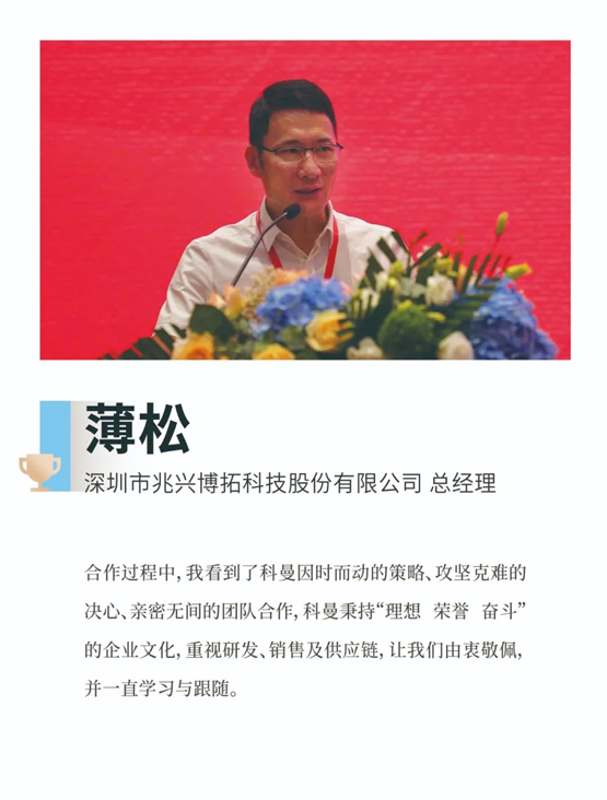 他提到,从2002年成立发展至今,科曼已经走过20个年头。公司在易勇董事长的领导下,产品系列不断丰富,公司规模持续扩大,获得了快速发展,这不仅是全司上下共同努力的结果,也离不开所有供应商伙伴的支持。当科曼一度遭到供应链困难时,是“老朋友”般的供应商伙伴们与我们一起携手、共渡难关,这些情谊我们都记在心里。在座的有的是新朋友,有的是老朋友,未来,希望大家能一如既往的支持我们,与我们共同成长。科曼良好的愿景与前景,一定能给供应商伙伴们带来回报!