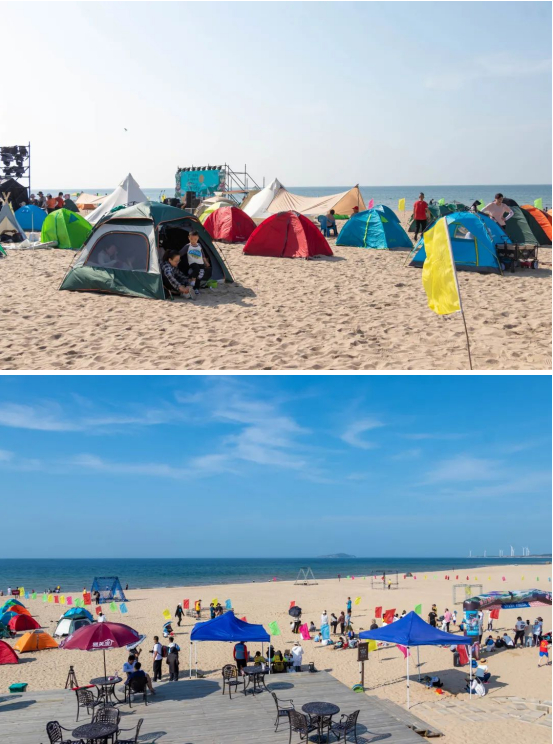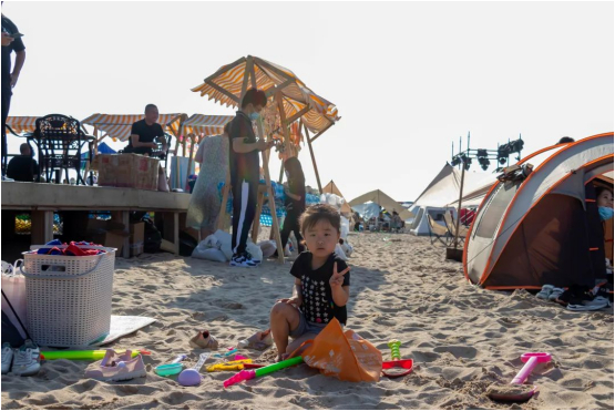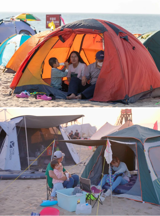五颜六色的帐篷,构筑起一个童话世界,悠闲地坐在海边沙滩,静静地等待日落,这时暖橘色的晚霞能治愈你一切的烦恼和不开心。孩子们像串门一样在各个帐篷里穿梭,邻里一起野餐、游戏,这是一幅属于那香海的初夏美好图景。