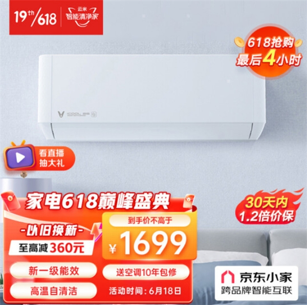 天气越来越热,空调当然得家家必备,趁京东618有以旧换新补贴,赶紧把家里的“老古董”换新。这款云米 (VIOMI)京东小家智能生态 大1匹空调挂机(京东搜:100038572574)外观简约大气,是一款颜值与实力并存的新一级能效空调,新国标一级能效可以节能省电,全直流变频整机持久耐用,睡眠模式自动调温、整夜舒睡不觉凉,智慧自清洁、室内空气持久清新,舒适迅速覆盖全屋,可以满足一家人对舒适风感的需求。24小时极速安装,妥妥的既超值又省心!