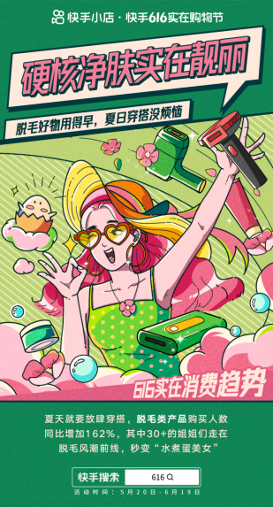今年616,脱毛类产品购买人数较去年增加162%,其中30+的女性走在脱毛风潮前线。