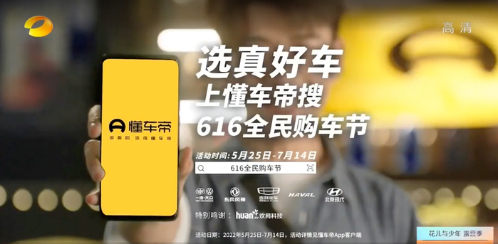 除了平台跨端打通,懂车帝616全民购车节广告还在 湖南、东方、浙江、江苏、北京五大上星卫视进行传播,赢得极致声量与关注。