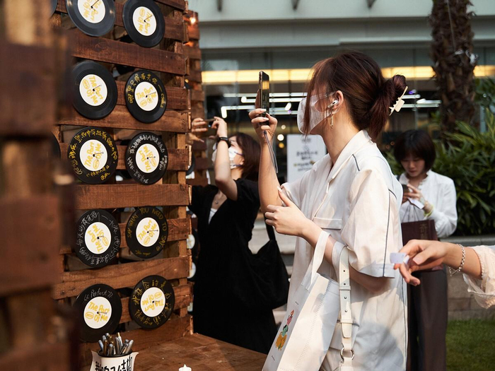 除了人数之外,和去年婚礼不同的是,WhatYouNeed 与万菱汇一起,在银禧婚礼的置景下,将城市中心的天台变成了惬意的露营地,大家可以席地而坐,享受夏夜晚风的美好。而现场的每一位新人,都可以收到由 ooak 特别提供的项链戒指,用于提醒自己:“爱自己是需要一直践行的使命。”