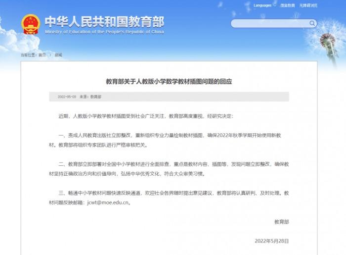 其中,回应提到:对教材内容、插画等,发现问题立即整改,确保教材坚持正确政治方向和价值导向,弘扬中华优秀文化,符合大众审美习惯。