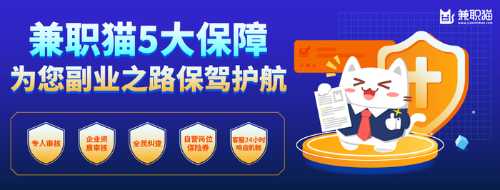 此外,九尾科技旗下兼职猫——国内领先的专注于大学生兼职的数字化平台,2022年正值九尾科技成立九周年,兼职猫推出“线上副业”专场,预计将会有超过5000家企业在“线上副业”专场发布招聘信息,依托于大数据分析系统及人工智能审核系统,自动为用户筛选出最真实优质的招聘信息,并且推出专人审核、企业资质审核、全民纠查、自营岗位保险券、客服24小时响应机制五大保障,保证副业信息真实靠谱,为求职者的搭建一个完善的“线上副业”平台。
