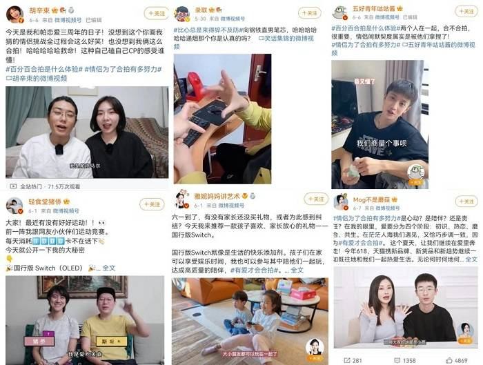 有趣初印象吸引微博网友关注到猫头手势后,天猫更进一步联动原创KOL在猫头中沉淀许多真实、有爱故事。在#百分百合拍是什么体验#、#情侣为了合拍有多努力#等话题中,情侣、朋友、亲子博主们纷纷结合生活化场景创作,将手势合拍上升到默契合拍。这些故事性的“合拍”,让“比个猫头”成为了表达爱的最佳手势 。