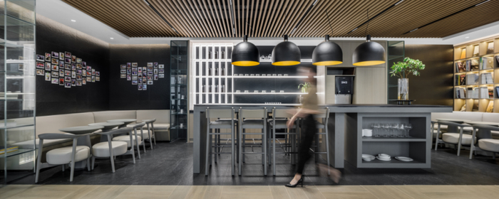 平时这里作为员工的茶水、休息、就餐区域,同时也兼顾了临时接待、开放式的洽谈讨论功能。员工的生日会、节日活动、主题沙龙都在这里举行。这里就像人体的心脏功能,链接了各个区域和部门,家庭会客厅般的空间效果,将大家有机的联合在一起。