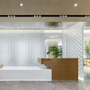 会议室以多个“ 玻璃盒子 ”方式植入到整个空间,动态透明的玻璃区隔,使原来空旷而均质的空间,因界限与功能的模糊化,衍生出复合错落的空间秩序。