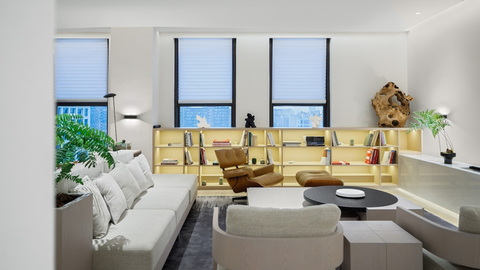 摒除传统的顶面照明方式,只保留空间的氛围照明,而选择更为友好的桌面智能灯光系统,既是为了给员工营造更好的办公体验,同时也为了达到节能绿色的可持续目标。一切都是点到为止,简洁克制。