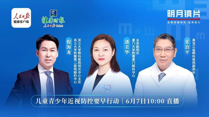 众所周知,眼部健康至关重要。但受各种因素影响,我国儿童青少年的近视率逐年提升,而且近视低龄化、重度化问题比较突出。作为国内镜片行业代表之一的明月镜片,向来都积极关心儿童青少年近视防控的事情,不仅推出系列帮助儿童青少年做好视力管理的镜片,还积极展开相关活动。今年6月6日第27个全国爱眼日,明月镜片就积极参与到与儿童青少年近视防控有关的活动中去,邀请了多位国内权威专家,在人民日报健康客户端开展了两场专题直播,共同探讨儿童青少年近视防控议题,并为家长进行近视防控科普。