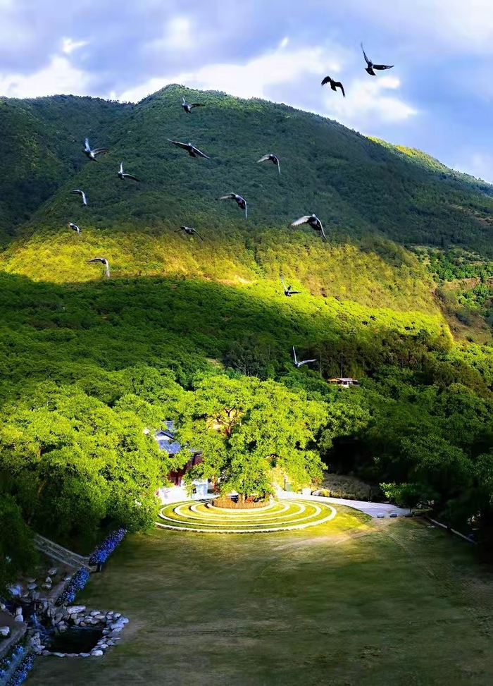 “以前出门看山,满眼都是光秃,村民们每天上山砍柴烧,没有经济来源,成群结队上山抓鸟、挖兰草,廉价卖给山下……”张会祥回忆起多年前村民受利益驱使捕猎买卖鸟类动物的情形,眉头紧锁。如今,村庄不同季节有不同的景致,白云之下满山绿油油的一万多亩核桃树连绵不尽,满山的大核桃树上,鸟巢落满枝头。