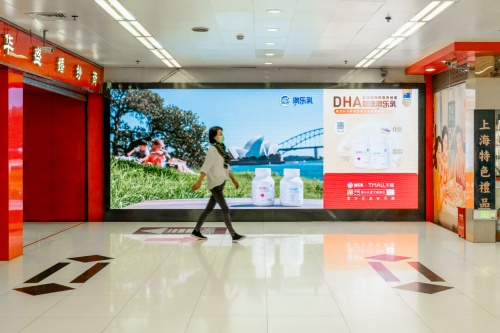 2022年618大促期间,澳乐乳瞄准时机,进行大型线下广告投放来强势曝光。澳乐乳的王牌产品儿童DHA、孕妇DHA产品形象出现在上海最核心的商务区-人民广场,这里多条重要线路交汇处,是大牌广告的“兵家必争之地”。此次宣传活动,旨在彰显澳乐乳形象超高调性,“抢占”人民广场,一次性覆盖多座黄金点位扶梯墙贴包围,50米地铁通道大吊牌,7号出口LED 超级大屏,2号线换乘人流中心梯顶等重要位置,交叉火力增大曝光量,出入必看,触达人群超过150万以上。让“DHA就选澳乐乳”,“宝宝更聪明,妈妈更开心”等广告语深入人心,澳乐乳健康、安全、纯天然的良好形象,及品牌一直秉承的“Spring into Health”的承诺,也经由此次活动,第一时间带给了中国市场的消费者。