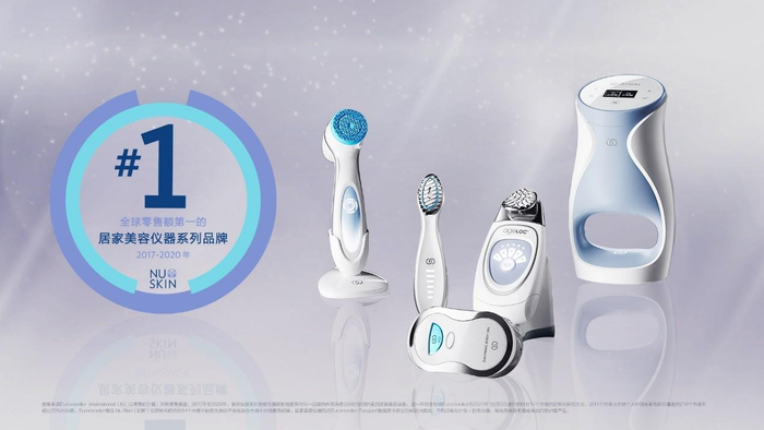 *数据来源Euromonitor International Ltd;以零售价计算; 所有零售渠道; 2017年至2020年。美容仪器系列是指专属搭配或推荐与同一品牌的外用消费品同时使用的家用皮肤美容设备。这一声明是根据Euromonitor在2021年1月至3月进行的针对14个市场的定制化研究方法,这14个市场占全球个人护理类家电研究覆盖的210个市场中超过70% 的份额。Euromonitor确信Nu Skin(如新)在定制化研究的14个市场中的领先地位不会被其余市场中的销售所超 越。居家美容仪器包括Euromonitor Passport数据库中定义的电动洁面仪;不包括电动护发/脱毛仪器,电动身体除毛器或电动口腔护理产品。