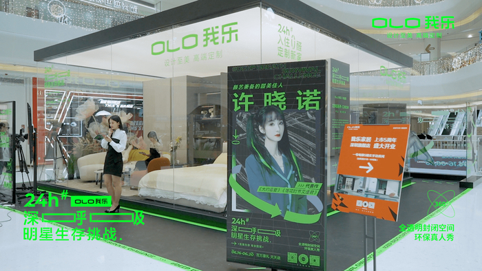 我乐家居在深圳宝能环球汇现场搭建真实家居场景,并邀请四位明星“入住”参与这场“24小时深呼吸明星生存挑战”真人直播活动,体验健康时尚新生活,展示在后疫情时代,人们对健康生活的追求下,和在新消费趋势中,人们对品质生活的追求下,定制家居品牌如何让家居环境通过“健康”出圈,为品质生活赋新、为定制家居产品赋值、为行业发展赋能。
