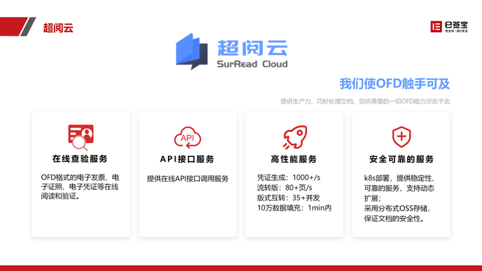 在政策与市场双重驱动下,e签宝旗下的信创数字办公产品——“超阅”版式办公套件全新升级,8大功能模块实现云端融合,同步新增50+服务,聚焦国产化、自主化、信息化,提供符合国家 OFD版式文档标准规范的数字办公及电子签章解决方案。