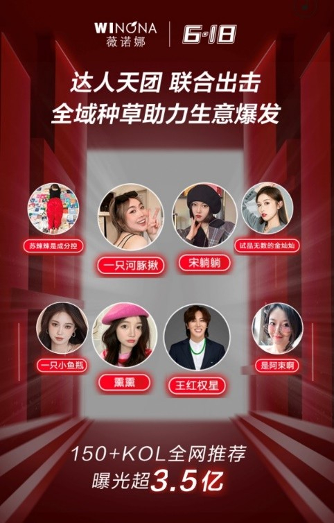 在此次618,薇诺娜为不同平台定制化输出不同内容,联合人民日报为首官媒以及站内外全媒体矩阵全覆盖强势曝光超1亿+,通过小红书、抖音、微博、微信上超150位博主达人于5月初开始蓄水种草,通过社交口碑沉淀品牌资产,让消费者从品牌调性、医学及植物DNA、产品功效多层次了解品牌及产品理念曝光超过3.5亿+。同时,全域传播的“组合拳”也让品牌的营销活动传播声量更立体,触达率更高。