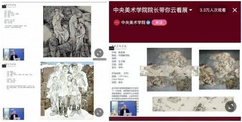 在随后两天的直播中,中央美术学院壁画系主任唐晖、雕塑系主任张伟、油画系主任张路江,和中国画学院院长刘庆和等校方代表相继现身直播间,从不同的领域角度带领网友解读学生作品,并分享了部分艺术作品背后的创作故事。