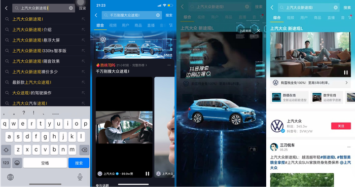 站在品牌营销角度,相信通过这次可口可乐、vivo、上汽大众在抖音搜索端的campaign,品牌们对于“整合营销”的“整合”,也会有一轮更深的思考。抖音搜索功能就像高速公路的集中枢纽,连接热榜/彩蛋/挑战赛等整套打法,四通八达的多样路径能叠加出多重流量,联动巨量引擎生态内外部多类资源,激发巨大的营销增益价值。而在任意一条互动路径上,用户只要有了搜索动作,就有相应需求,需求背后可能就是高潜用户的行为转化。