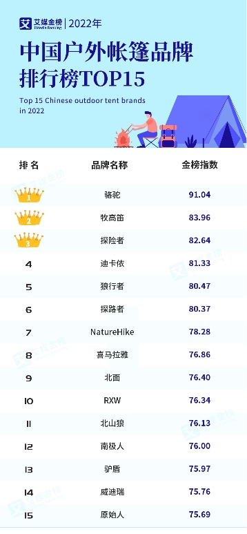 近期,艾媒咨询公布了“户外帐篷品牌排行榜”,骆驼荣列第一位。多年来,骆驼坚持走“品质驱动,创新发展”多年的路子,不只是“骆驼鞋”的观念深入人心,骆驼帐篷扎实的品质、技术也融入了骆驼的DNA。加上越来越完善的“ENFO”系列的科技布局,使骆驼拥有了成为户外帐篷第一品牌的底蕴。