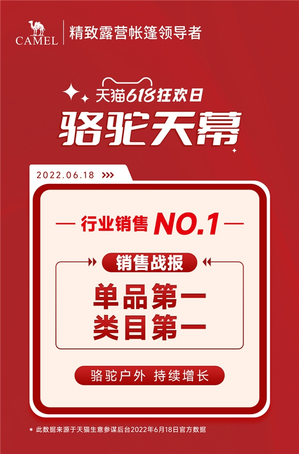 另一方面,年轻群体的消费习惯,已日趋于高品质+专业化的产品。无形间,这种消费习惯会让年轻群体更信赖大品牌。谈及一个产业发展,用户的需求和习惯,是倒逼产业发展和变革的外部驱动力。当下市场,年轻群体必会成为带动市场回暖的重要力量。此次618骆驼露营产品的引爆,恰恰印证了骆驼在露营领域已经和用户互相成就,正在快速占领露营市场的份额。