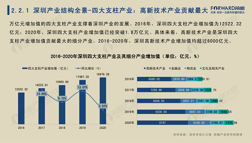 此前不久,前瞻产业研究院出炉了城市产业画像系列:2022年深圳市产业全景分析报告。深圳市,2020年的GDP位居全国第三,拥有“四大支柱产业,七大战略性新兴产业,五大未来产业”架构的产业格局。