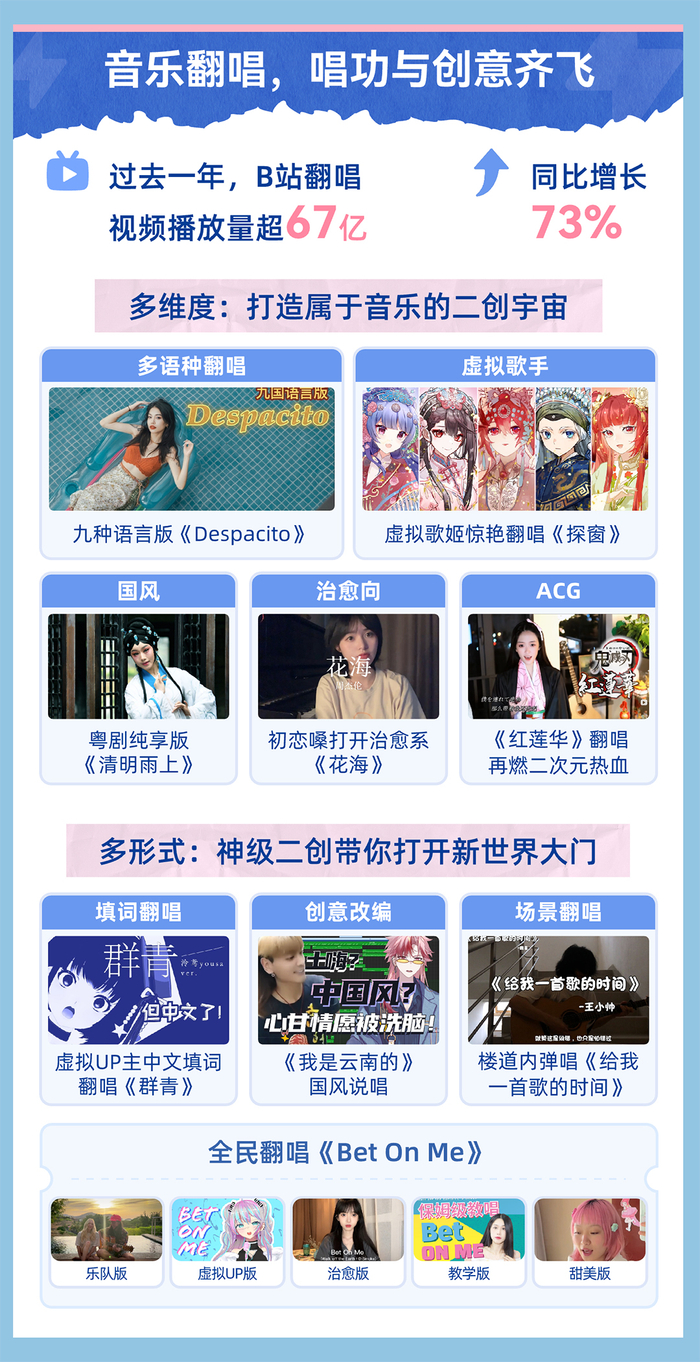 翻唱视频播放量超67亿,同比增长73%